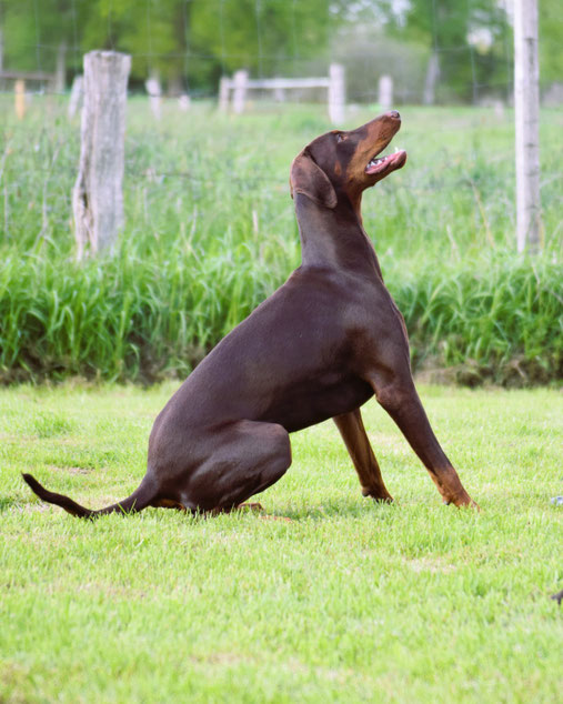 Die Tendenzen der Zickigkeit im Schutzdienst von ihrer Mutter, aber im Gegensatz dazu die Führigkeit ihres Vaters gestalten ihre Ausbildung bisher sehr entspannt.
